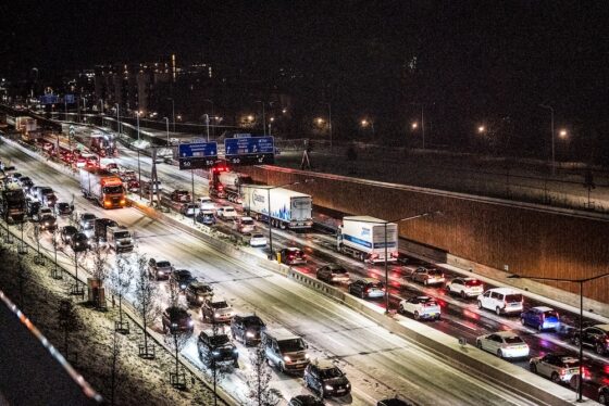 Long traffic jams as overnight snow leads to slippery roads
